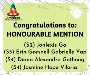 Last November 2021, a delegation of SSCians competed virtually in the AMERICAN MATHEMATICS OLYMPIAD (AMO). And the results are out! Congratulations to our medalists, and here’s to that continued resilience, choosing to push oneself and see how far you can go despite the odds this pandemic has brought us.