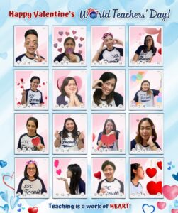 Rise and shine; it’s October 5! Here’s greeting our 100+ SSC Teachers with this year’s theme: HAPPY VALENTINE’S WORLD TEACHERS’ DAY! Thus, the many hearts in this post, given the teaching profession, is also best described as a work of HEART! Like Valentine’s Day, there may be flowers and chocolates, but more importantly, there will be messages of thanks and appreciation for our dearest SSC Teachers. And here’s greeting HAPPY WORLD TEACHERS’ DAY, too, to all the other Teachers around the globe!