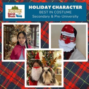 For Day 3 of SSC’s HOLIDAY SPIRIT WEEK, we’ve got: Santa and his Elves The Reindeers The Snowmen & other HOLIDAY CHARACTERS! And we dress up because we are ONE SCHOOL, ONE THEME… UNITED!