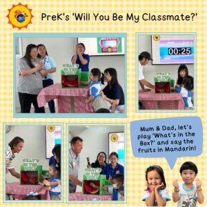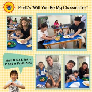‘Dad and/or Mum, will you be my classmate?’ Our Pre-K Warriors asked that question, and their Parents excitedly answered YES! Last 09 May (Tue) saw our ‘classroom’ abuzz with excitement as Dads and Mums stepped into the shoes of our Pre-K Pupils! We kicked off the fun with a MOVE activity and got to know each other through a game called ‘That’s My Child!’ Then, our Pre-K Pupils and their New Classmates guessed the fruits inside the box. The catch? They need to say it in Mandarin in relation to what they have been learning in class. To top it all off, they went ‘Fruit Shopping’ and formed trees out of fruits. It truly created a lasting memory for our Pre-K Warriors and a perfect opportunity for Parents to see their kids in action.