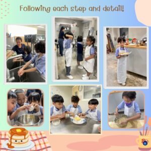 P1’s Pancake Party, yes in class! Learning to follow instructions is one key skill taught in P1 English. And Teacher Caryl had the best lesson plan on how to teach it! It was fluffy and tasty and our little chefs made sure to follow instructions so they can go yum yum yum after! “I know how to crack eggs”, volunteers one pupil. “This smells so yum”, exclaims another but this was still during the mixing process. “I want more”, said most after gobbling up what they created from following instructions in English class!