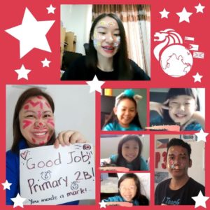Stickers on Teachers, anyone? And if no sticker? No problem! There’s lipstick, powder (don’t look now, one Teacher is about to attempt charcoal)! Thanks to a Parent forwarding an article from the Washington Post, we got this idea to spur Pupil engagement in online classes. Said a professor of education psychology: “We need to do these kinds of exercises to help pull students out and make them feel like they’re actually engaging with real people.” So what happened is, for every Pupil who participated in class, or got a correct answer in Maths, that is = to 1 sticker or mark on Teacher’s face! And we tried it from PreSchool to Pre-University; take a look at the responses! Some got such a kick out of it, and some did not react at all! But for the Teachers, it was worth being silly for, if only to get Pupils to engage more! So hopefully through this post, other Teachers may try it too! #BeBrave