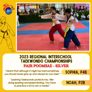 We continue to celebrate SSCians who embody our shoutout: #SSCWeCanDoHardThings We have Chung Bi Yoon, a graduating Pre-U2 Pupil, who was selected as ONE OF THE FIVE RESEARCH PRESENTERS in the prestigious Lumiere Research Program. From a competitive pool of over 100 pupil researchers worldwide, Chung Bi stood out as this is someone who is always eager to level up his skills. Then, we have Sophia (P4) and Noah Luy (P2) working hard together in their recent TKD performance! These dynamic siblings earned a SILVER in PAIR POOMSAE in the 2023 Regional Interschool Taekwondo Championships. Carry On, SSCians!