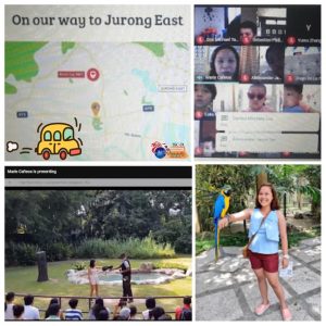 It’s SUMMER, but here’s something SPECIAL for our staying-home, staying-safe SSC PreSchoolers! Last 01 July 2020, TEACHER MARIS brought her recently graduated K2 class to… JURONG BIRD PARK, SINGAPORE! Teacher Maris has personally been there (see her picture on the 2nd collage), thus with the use of much CREATIVITY and IMAGINATION, she brought her K2 kids there too. Oh how excited was everyone watching Jurong Bird Park’s “High Flyer” show! Now guess what? In this Summer Special session for our PreSchoolers, Teacher Maris also got to revise these K2 lessons: -all about transportation (airplane, MRT, bus) -animals (food, habitat, survival) That’s not all, Amber Laoshi joined in too, thereby revising as well how to call the animals, describe their traits in… MANDARIN! Thanks to Teachers Maris and Amber Laoshi for this very special treat! SSC is running complimentary Summer Special sessions for its returning pupils from 01-17 July.