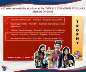 SSC is back competing in WSC (World Scholar’s Cup)! And in the Manila Regional Round held at Singapore School Manila last Nov 24-25, we are proud of our 21-delegation Team notching THREE OF THE TOP 5 SPOTS in the OVERALL TEAM CHAMPIONS and OVERALL CHAMPION SCHOLARS (Seniors Division) and for our lone JUNIOR TEAM to grab the #3 spot for their Division. More than the many trophies and medals received, we highlight the transformative opportunity this has been. We can’t wait for Term 2 to start, where our delegates can inspire others with their takeaways! Our SSC delegates often shared that it wasn’t easy, but then they would follow it with “But WE CAN DO HARD THINGS!” #sscYESWECAN